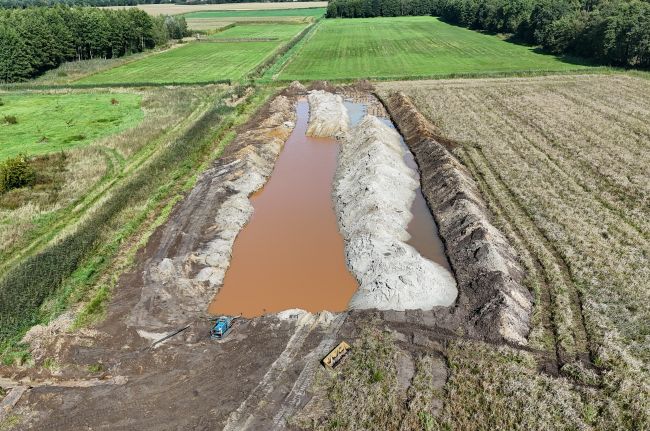 Das erste Kleingewässer im Rahmen des groß angelegten Renaturierungsprojektes „Kleingewässerentwicklung in Niedersachsen“ ist fertiggestellt worden. In Dersum kann sich nun ein neu geschaffenes Stillgewässerbiotop weiterentwickeln.