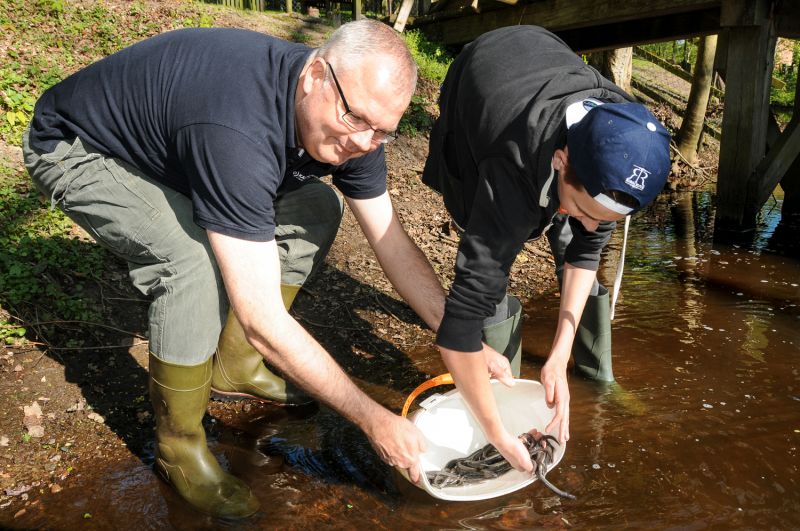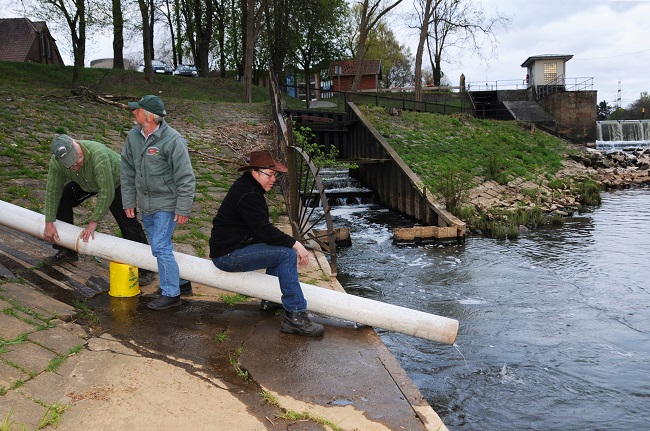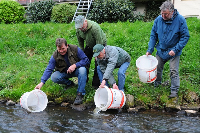 Lachsbesatz für die Ems am Listruper Wehr (Foto: Henning Stilke)