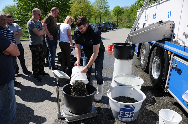 Die Lieferung der Jungaale erfolgte wie in den vergangenen Jahren auch durch die Firma ALBE Fischfarm. Der LKW mit der kostbaren Aalladung stand auf einem Pendlerparkplatz an der A27. Dort holten die Vereine aus dem östlichen Verbandsgebiet ihre Besatzaale ab, um sie auf direktem Wege an die Gewässer zu bringen. Bodo Zaudtke, der Verbandsgewässerwart, wachte mit einer Waage darüber, dass jeder genau die Menge Aale bekommt, die er bestellt und bezahlt hat. Wenn man bedenkt, wie viele Angler an diesem Wochenende ehrenamtlich unterwegs waren, um sich für den bedrohten Aal einzusetzen, dann hat das schon etwas von einem Großeinsatz für den Artenschutz.