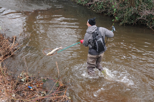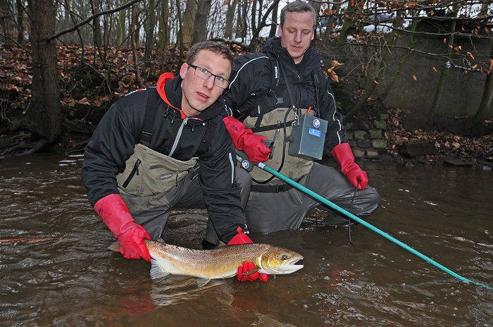Die letzten drei Monate des Jahres 2015 standen für die Vereine des Sportfischerverbandes wieder ganz im Zeichen der Wandersalmoniden. Jedes Jahr sind es etwa 60 bis 80 Einsätze am Wasser, in denen die engagierten Freiwilligen sich beim Elektro-Fischen auf die Suche nach laichfähigen Meerforellen und Lachsen begeben. Neben dem Verbands-Biologen Dr. Jens Salva waren zum Teil gleichzeitig weitere ausgebildete Fachkräfte mit E-Geräten unterwegs, was die Arbeit sehr effektiv gemacht hat.