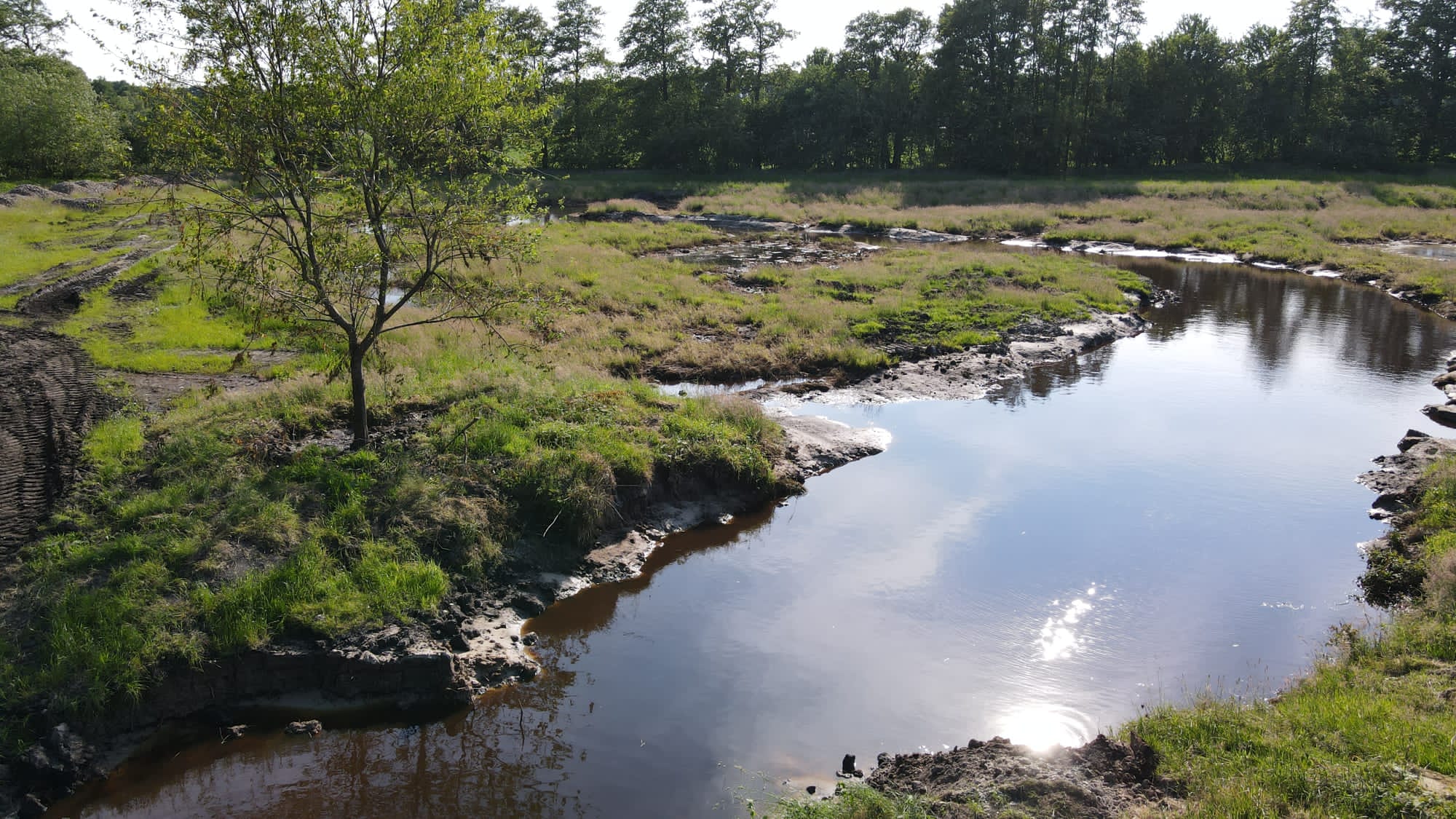Die gemeinsame Anstrengung zeigt ein deutliches und für die Region ungewohntes Bild, das von einer speziellen Fachfirma in die Landschaft eingegraben wird. Der neue, verschlungene Flusslauf sieht aus wie eine Miniatur des Amazonas. Und ähnlich wild und natürlich soll der kleine Fluss auch bald wieder strömen.