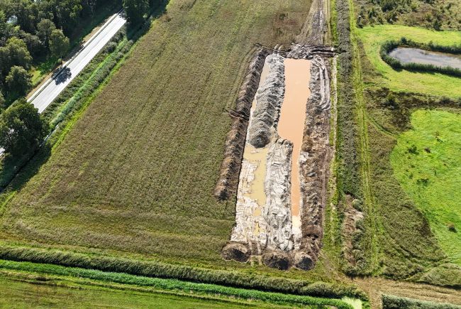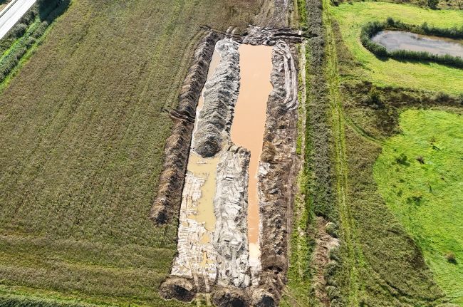 Das geschätzte Bodenaushubgesamtvolumen beträgt 7600 Quadratmeter. Bei einer Oberbodenschichtdicke von 0,3 Meter fallen ca. 2280 Quadratmeter Oberboden an. Der Bodenaushub wird auf der Maßnahmenfläche und dem angrenzenden Acker verbracht. Beide Flurstücke liegen nicht im Überschwemmungsgebiet.
