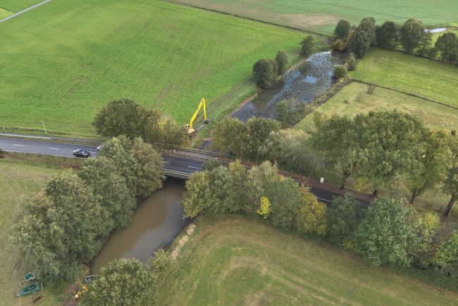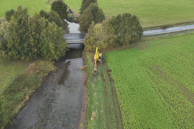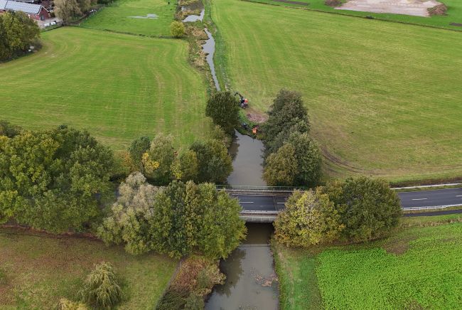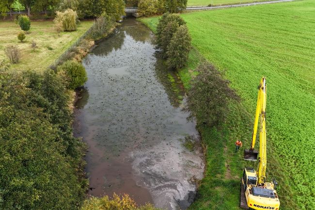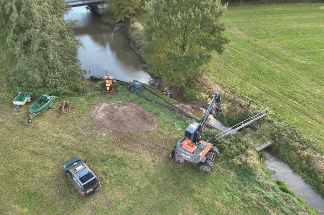 Stark verschlammter Abschnitt des Lakensystems bei Niederlangen. Im Nordwesten von Niederlangen begannen am 27. Oktober 2025 die Arbeiten zur Entschlammung des Lakensystems Burwiesenschloot. Über Jahrzehnte haben sich insbesondere in den Laken erhöhte Faulschlammablagerungen angesammelt. Zudem wiesen die Laken teilweise starke Verlandungserscheinungen auf. Durch die gezielte Entnahme der organischen Ansammlungen wurde eine Verbesserung der Gewässerstruktur und Wasserqualität vorgenommen.